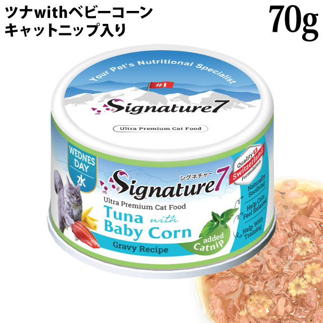 シグネチャー7 水 グレービー キャットニップ ツナ with ベビーコーン 70g