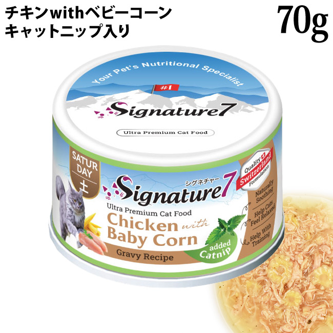 シグネチャー7 土 グレービー キャットニップ チキン with ベビーコーン 70g