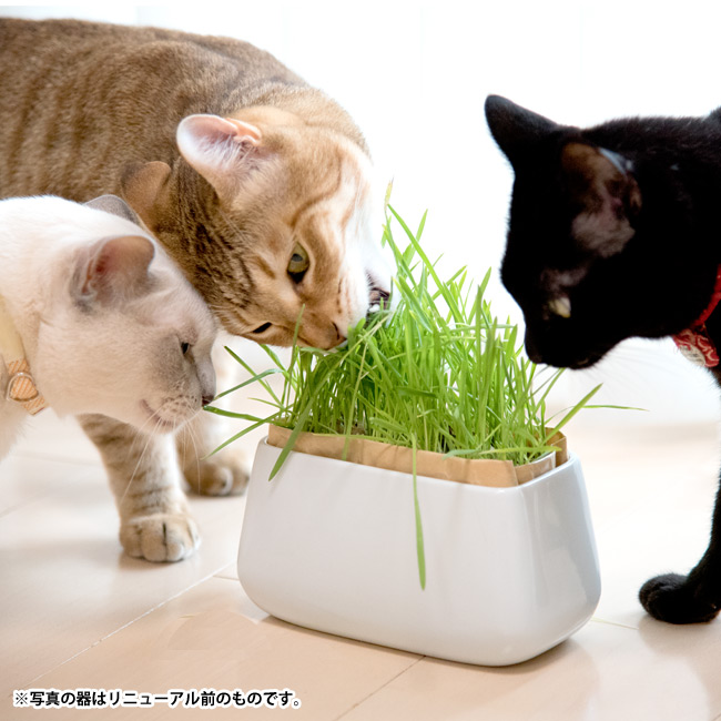 おしゃれな猫草鉢と、紙パック入りの猫草の栽培セットでございます! 種まき不要。紙パックを開いて水をそそぐだけで、7〜10日後には新鮮な猫草の出来上がり〜 猫生活の隠れた必需品・猫草を、おうちで手軽に育てちゃいましょう♪