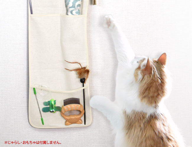 深さのあるポケットだから長い猫じゃらしもスッキリ収納できて、飼い主さんのお悩みも解消してくれます!