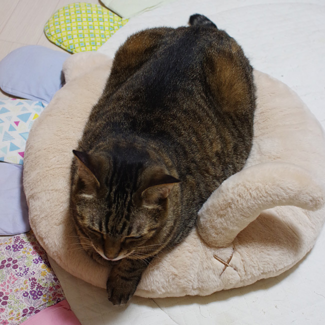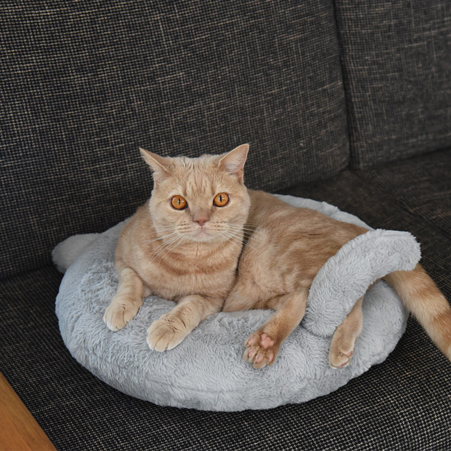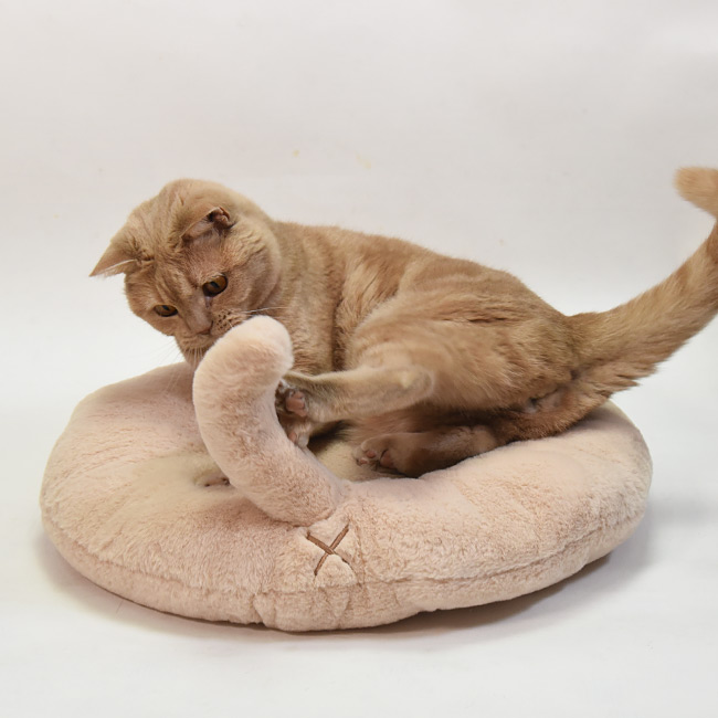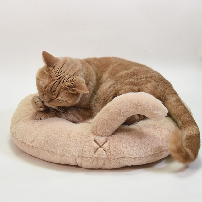 猫耳とシッポ付き!そしてお尻の穴のバッテンマークも付いているユニーク&キュートなラウンドベッドとなっております♪