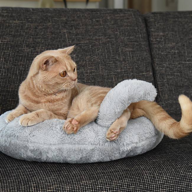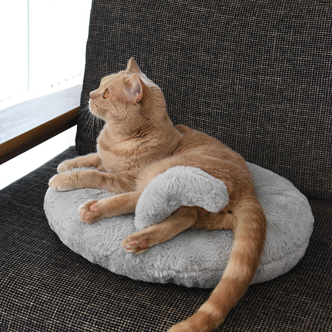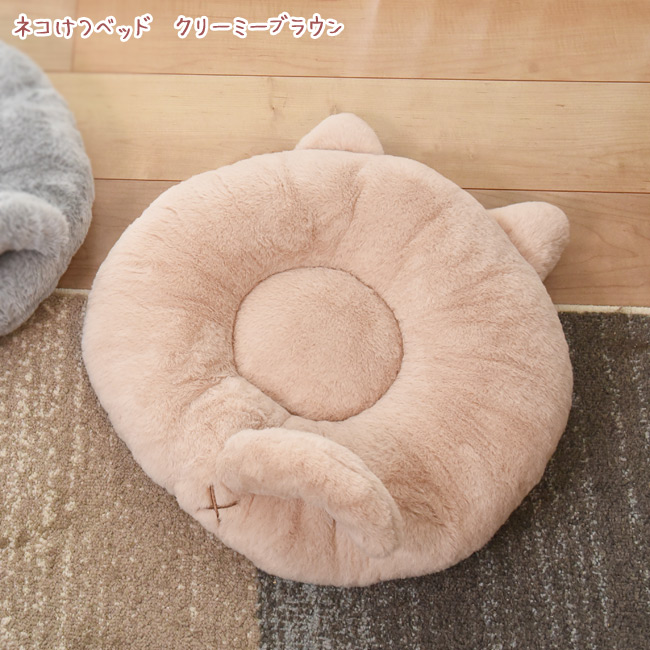 ネコちゃんのような肌ざわり。シッポ付きラウンドベッド。キャティーマン ネコけつベッド 猫用 ペット用 秋冬ベッド 保温アルミシート 洗える