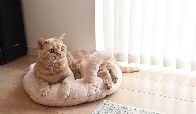 まるでネコちゃんを撫でているような肌ざわりのあったか保温アルミシート入りペット用ベッド。
