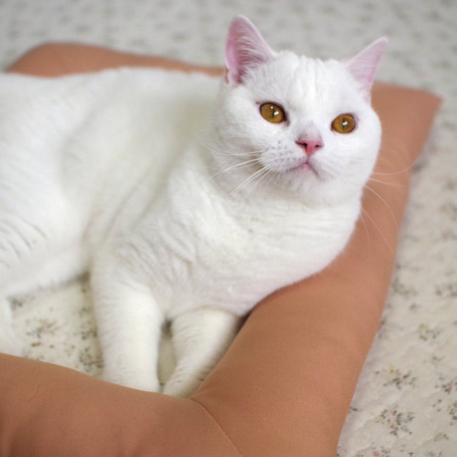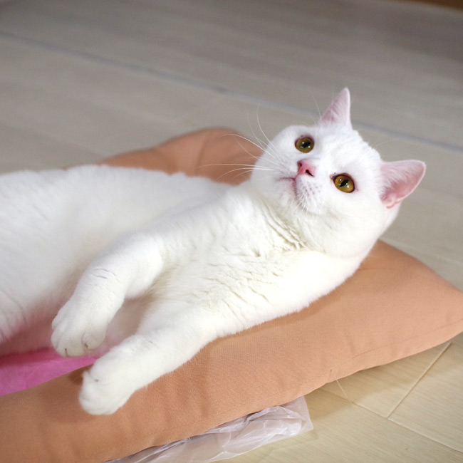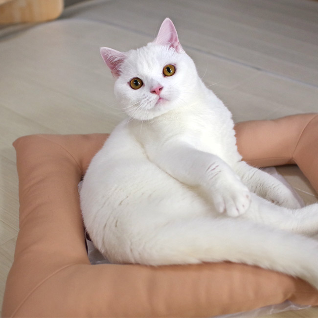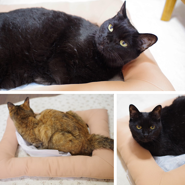 どんな風に猫ちゃんがくつろいでくれるのか楽しみになる“猫専用”の縁どり型ベッド(底なし)です♪