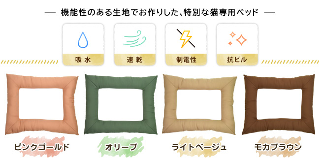 制電糸を使用した生地は静電気が起こりにくいので、ホコリや猫ちゃんの毛がまとわりつきづらくなるから比較的簡単にサラッとお手入れができます。