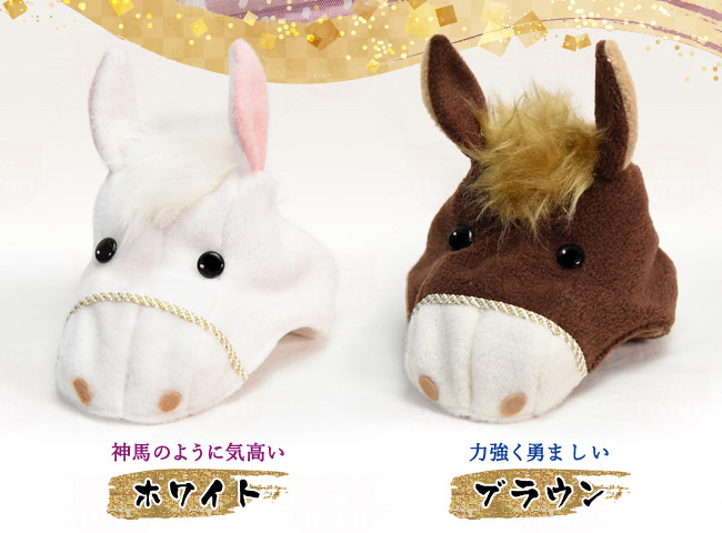 ゴロにゃんでも2026年の干支である「午(うま)」の被り物を、力強く勇ましさのある「ブラウン」と、神馬のような気高さのある「ホワイト」の2種類でご用意いたしました!