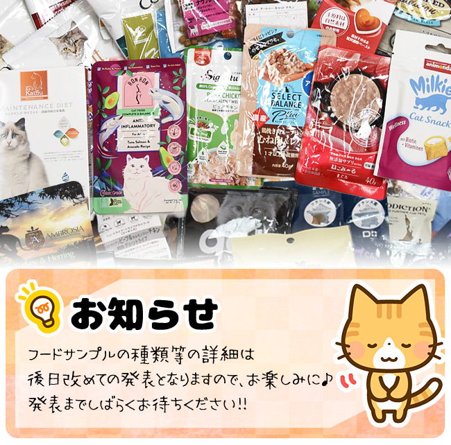 ●フードサンプルにつきましては、リパックの関係から賞味期限が近いものが入ることがあります。予めご了承ください。