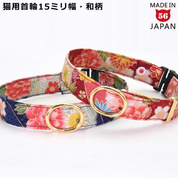 大型猫や長毛猫に。一定の負荷で外れる安全な首輪。鈴なし。デイリー15ミリ幅猫首輪 雲海桜牡丹