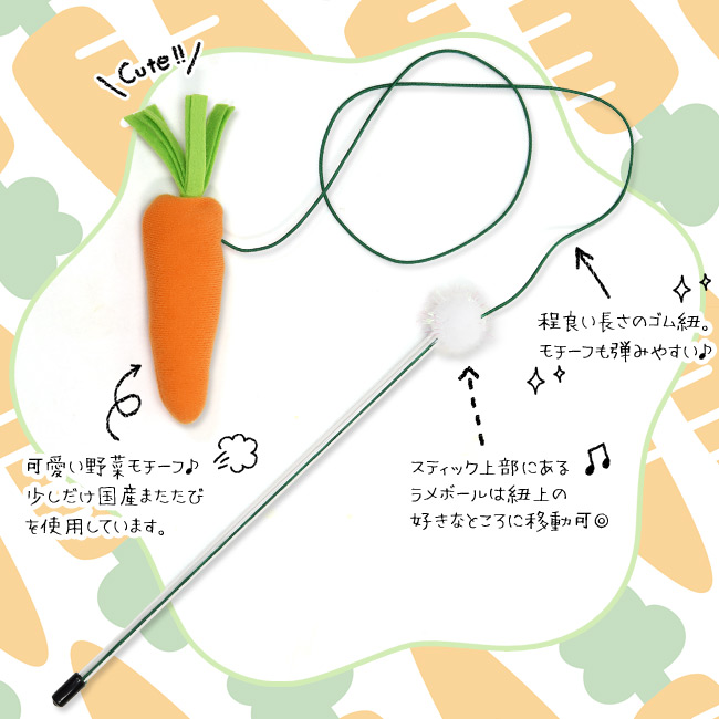 メール便OK!可愛い野菜モチーフの猫じゃらし。とびつくにゃんじゃらし にんじん (37545) ゴロにゃんオリジナル 猫じゃらし 猫用おもちゃ キャットトイ