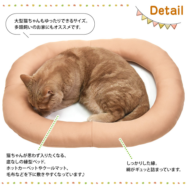大型猫ちゃんや多頭飼いのお家にオススメ!猫ちゃんが思わず入りたくなりそうな、真ん中に穴の開いた楕円形の猫用ベッドです。
