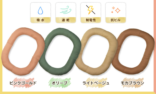 「ピンクゴールド」「ライトベージュ」「オリーブ」「モカブラウン」の4色展開。