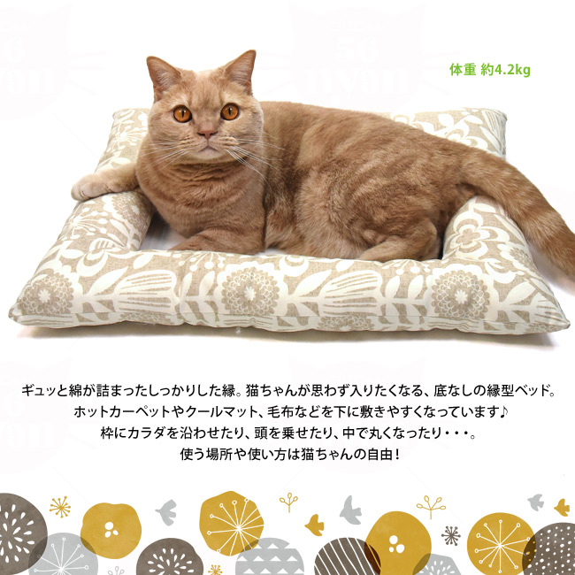 どこでもベッド スクエア ナチュラルフラワー (37828) ゴロにゃんオリジナル 猫用 縁どりベッド