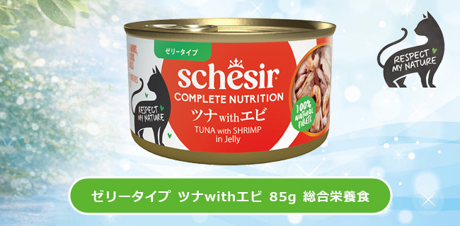 素材そのままのナチュラルフィレを使用した総合栄養食(ゼリータイプ)【発売記念10%OFF】シシア キャット ゼリータイプ ツナwithエビ 85g缶 (21123358) Schesir 猫用 総合栄養食 ウェットフード【ポイント10倍】