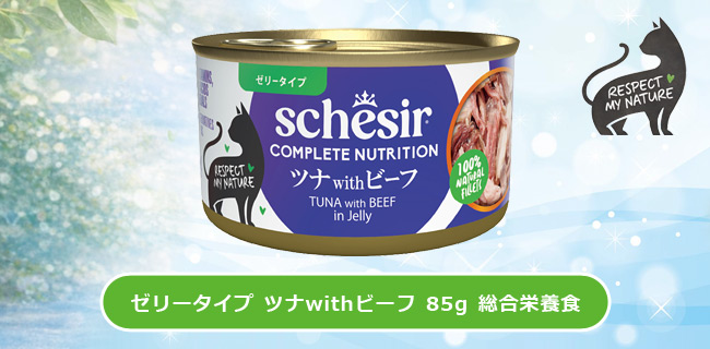 素材そのままのナチュラルフィレを使用した総合栄養食(ゼリータイプ)【発売記念10%OFF】シシア キャット ゼリータイプ ツナwithビーフ 85g缶 (21124158) Schesir 猫用 総合栄養食 ウェットフード【ポイント10倍】