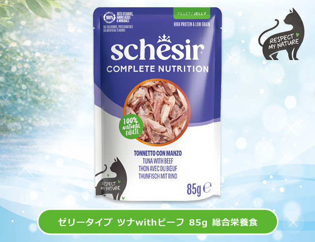 素材そのままのナチュラルフィレを使用した総合栄養食(ゼリータイプ)【発売記念10%OFF】シシア キャット ゼリータイプ ツナwithビーフ 85gパウチ (21224058) Schesir 猫用 総合栄養食 ウェットフード【ポイント10倍】