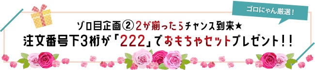 ●ゾロ目企画(2)注文番号下3桁が「222」でゴロにゃん厳選!オリジナルおもちゃセットをプレゼント!