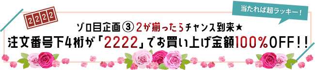 ●ゾロ目企画(3)注文番号下4桁が「2222」だとお買い上げ金額100%OFF!!