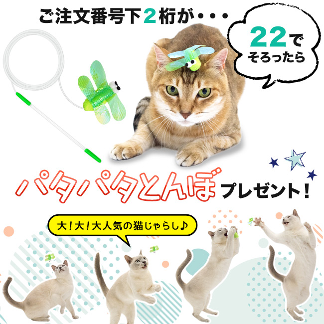 ≪ 猫の日月間特別企画 ≫ ●あなたの猫ちゃんのためだけの世界でひとつだけのハーネス ●ゾロ目企画(1)注文番号下2桁が「22」でゴロにゃん大人気の「パタパタとんぼ」をプレゼント! ●ゾロ目企画(2)注文番号下3桁が「222」でゴロにゃん厳選!オリジナルおもちゃセットをプレゼント! ●ゾロ目企画(3)注文番号下4桁が「2222」だとお買い上げ金額100%OFF!! ●その他お得なキャンペーン盛り沢山♪