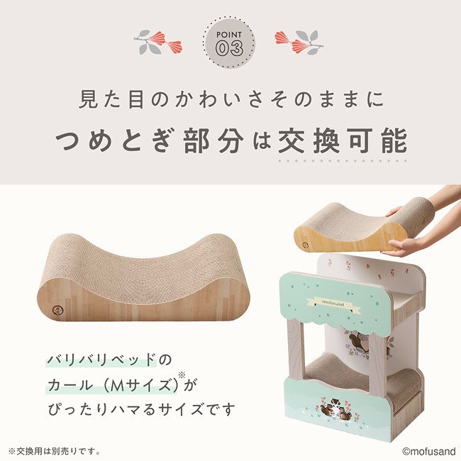 猫壱 バリバリダイカット ねこの二段ベッド mofusand モフサンド 北欧風にゃん 大型交換式つめとぎ