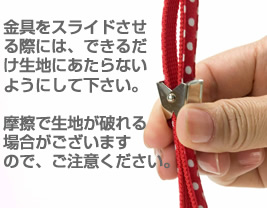 ■事故防止のため、適応サイズ以外のペットには使用しないでください。またペットの習性を十分理解した上で製品をご購入下さい。 ■ペットによっては着用を非常に嫌がる場合がございますので、ペットの様子を見ながら試みてください。(いきなりの外出等は、ペットが パニックに陥り、脱走の危険がございます。必ず室内での着用をお試しいただいてからのご使用をお願いいたします。) ■このハーネスはあくまでお散歩用、またキャリーバッグ等での逃げ出し防止用です。係留(ケイリュウ)には決して使用しないでください。ご使用時のリードの絡まりによる事故には十分ご注意下さい。 ■着用した状態のまま放置したり、目を離したりしないでください。 ■サイズ表を目安に、猫の場合は、指が1本(きつ目)、犬の場合は、指が2〜3本入るサイズをお選びください。 ■成長期のペットは特に体重やサイズが変化しますので適応サイズをご確認の上ご使用下さい。 ■毎回、商品の使用前には必ず点検を行ってください。特にマジックテープの部分に毛がつきますと接着が弱くなる場合がございますので、 着用の前に毎回点検をお願いいたします。 ■水気は避けて使用・保管して下さい。色落ちや変色、サビの原因となります。 ■使用後は必ずきれいにしてから保管して下さい。カビが発生したり、変色する恐れがあります。 ■火のそばには置かないでください。 ■直射日光の当る場所や、高温になる場所に長時間放置しないで下さい。 ■先が尖っているものや刃物等を当てないで下さい。 ■ペットによっては、ハーネス本体やリード部分を噛みちぎってしまう場合(噛み癖、ひっかき癖)もございますので、常に装着の際は、点険するようにして下さい。 ■金具や、他のパーツが破損した場合は、使用しないでください。安全の為、破損・不具合が見つかった場合は、新品と交換されることをおすすめします。 ■金具をスライドさせる際には、できるだけ生地にあたらないよう注意して下さい。摩擦で生地が破れる場合がございますので、ご注意下さい。 ■使用しない場合は、幼児、子供、ペットがふれない所に保管して下さい。 ■ハーネスから抜け出すペットもおりますので十分ご注意ください。100%逃げ出し阻止をお約束するものではございません。 ■ペットの性質を考慮した上でご使用下さい。ペットの予期せぬ行動により発生しうる事故や怪我・破損には、飼い主様の責任において注意・警戒下さい。