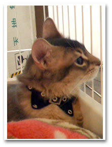 みかんちゃん:みかんの毛色には何色が似合うのか悩みましたがこの赤黒チェックがとても似合っていました。顔がキツイから ハッキリした色の方がいいのかな?